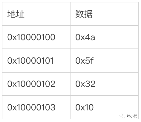 例如,为4字节格式化数据1247752720,它的16个输入代表0x4a5f3210,低位是0x10, 最高位0x4a,假设你存储了这个格式化存储器0x100100,终止地址0x100103,所以,在32位的Little Endian系统中,格式化内存存储如下: