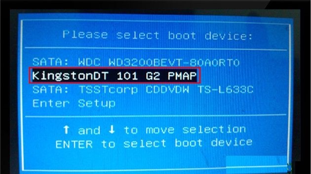将光标移动选择到的地方显示为usb启动的选项,所以当我们按下快速热键Esc的时候显示出来的选项中就有小编用制作好启动盘的u盘。如下图所示: