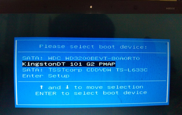 上图所示的光标所显示的第二项就是“u盘启动”,小编使用的u盘是金士顿品牌的;默认选项是“本地硬盘启动”,这时候我们只需用键盘上的上下键将光标移到第二选项“u盘启动”的选项即可;(u小编提示:部分机型电脑按下快捷键“F12”后会自动进入u盘启动,没有选择窗口,如果遇到那些情况的话我们就可以省略“选择启动项”这一步骤了)