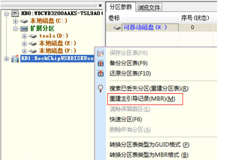 3、重建了分区表后,选择重建主引导记录。有些高级一点的U盘有隐藏分区的,如果不恢复也是无法使用的。