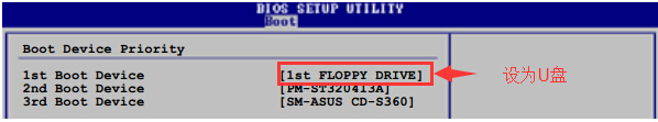 然后进入BOOT,选择Boot Device Priority并按回车进入,如下图