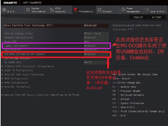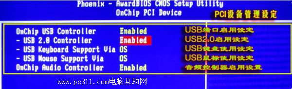 3、下面是PHONE AWAR BIOS启用禁用USB设置