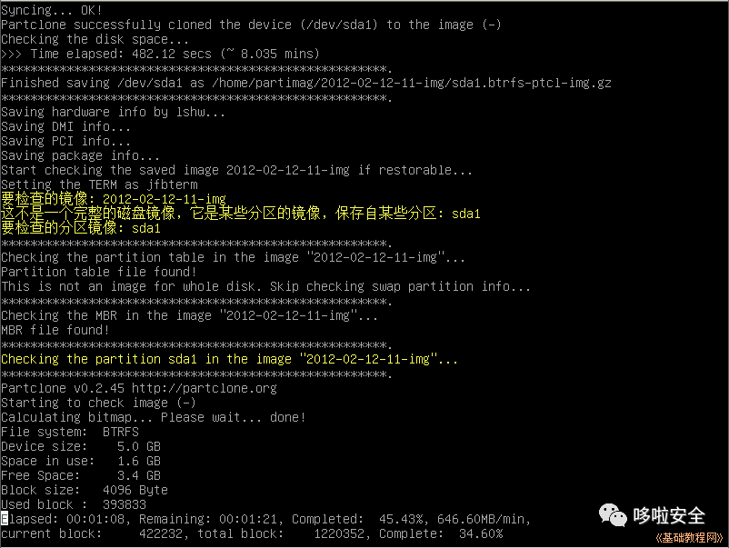 (10) 备份后,对正在耐心等待完成的镜像进行评估,速度警报如下;