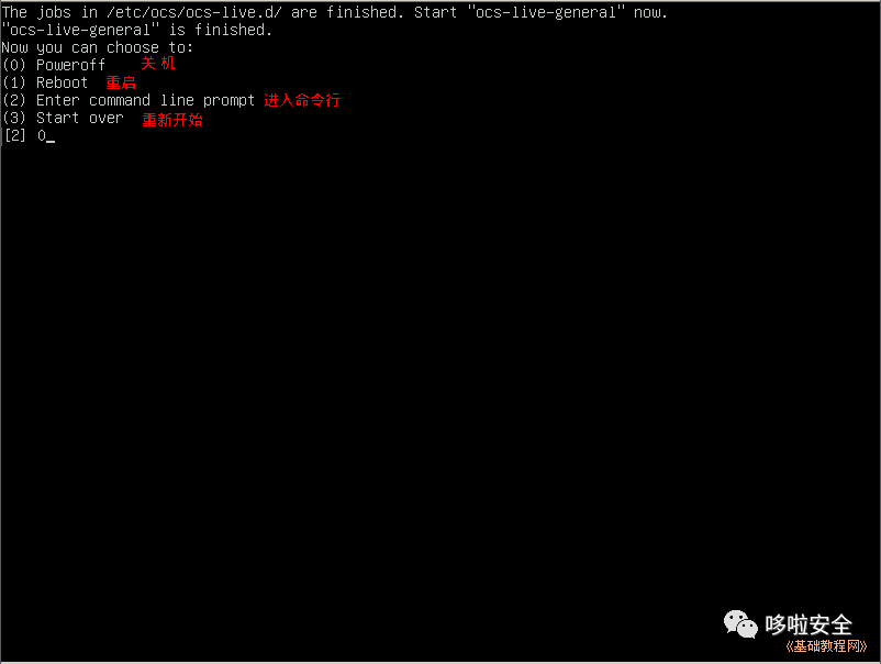 (12) 操作选择显示: 0 表示关闭, 1 表示重新启动, 2 表示输入命令行, 3 表示重新启动, 输入一个数字, 然后按返回键完成 ;
