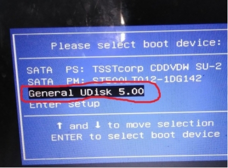 五. 重新启动计算机后, 闪存驱动器激活, F12( 各种计算机按钮更改) 启动菜单取出驱动器, 我们必须返回主页进一步安装 。