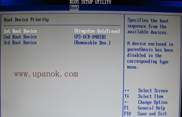 在没有优先级“ 硬盘启动价格” 选项的情况下, 您可以选择在第一个启动器“ 初始启动设备” 中从闪存驱动器立即开始 。