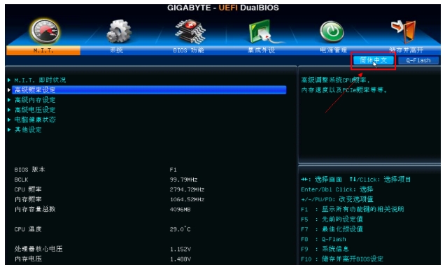 。 当我们打开电源时, 快速点击 " DEL " 按钮进入生物设置屏幕 。