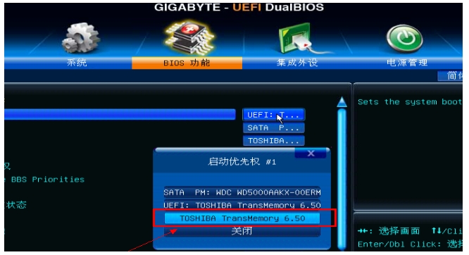 四. 访问页面后, 我们定位了磁盘的名称, 并设定了“ U- disk” 的起始优先级, 以磁盘作为第一个起始项, 由返回模式定义 。 (记住, 在加电时, 您必须插入一个计算机界面 。)