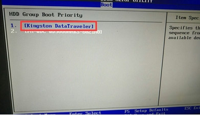 5. 选择 u-disk, 然后按 " F5/F6 " 向上键, 然后F10 保存修改并退出 。