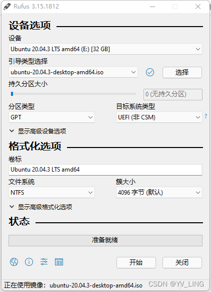 另一个使用Rufus工具写入Ubuntu20.04镜像文件,配置如下: