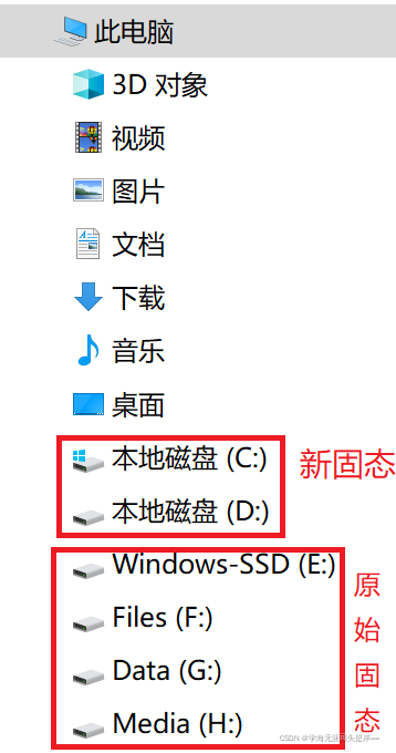 step1:查看需要操作的固态分区,EFGH为原始固态的分区。