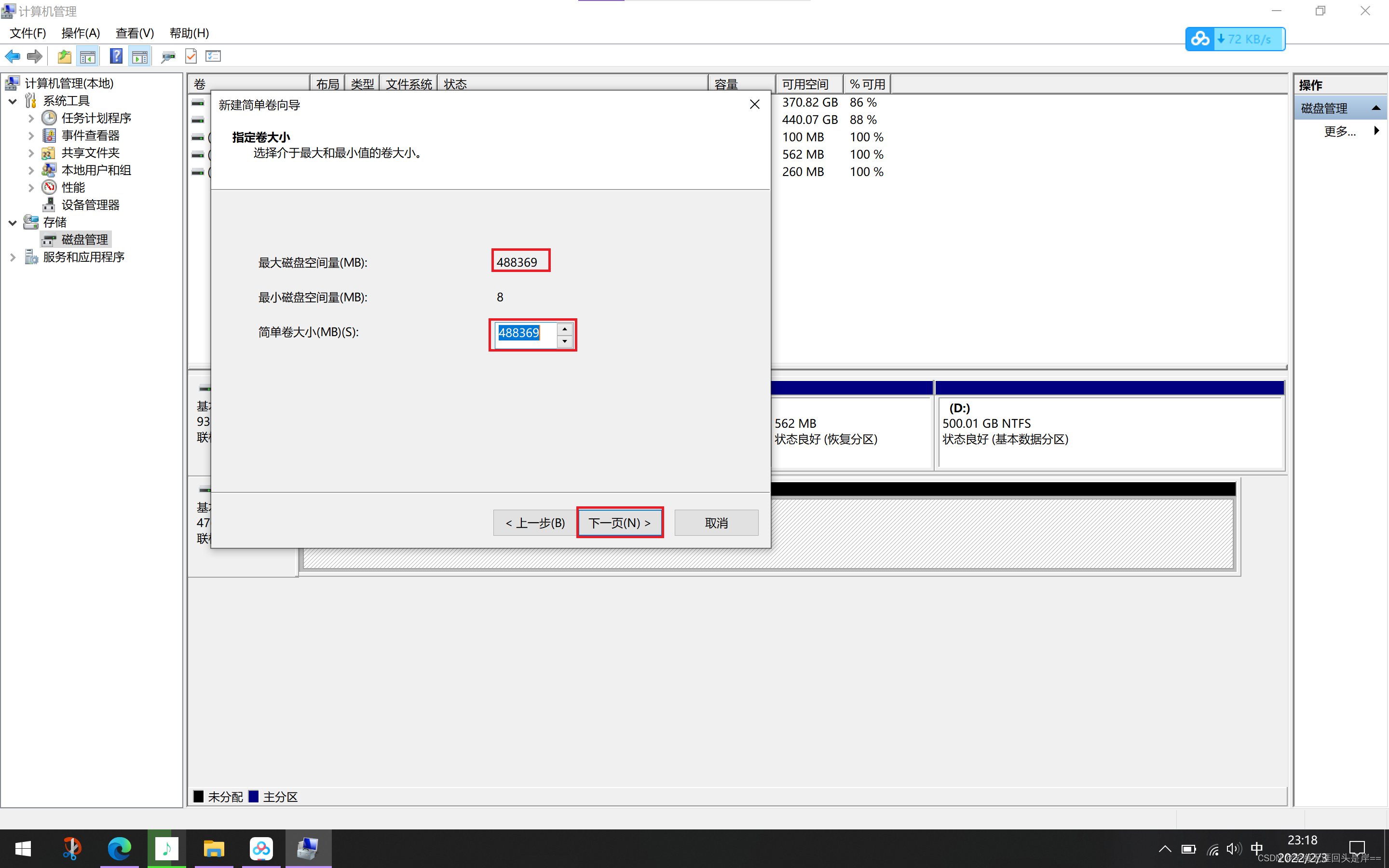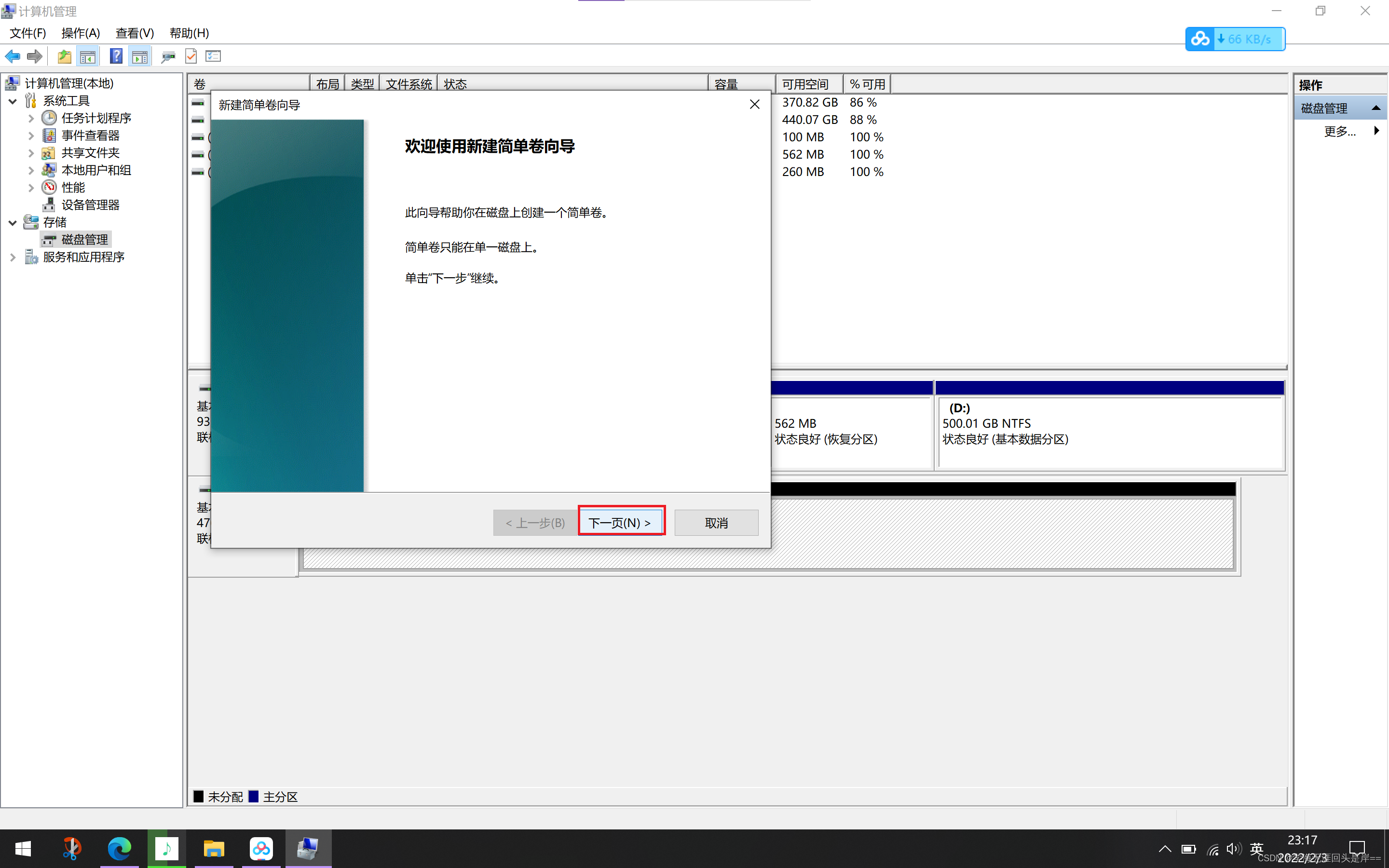 原始500G固态一共有4个分区,改成移动硬盘后打算只建一个分区,所以,需要先删除所有的分区,再新建一个分区。