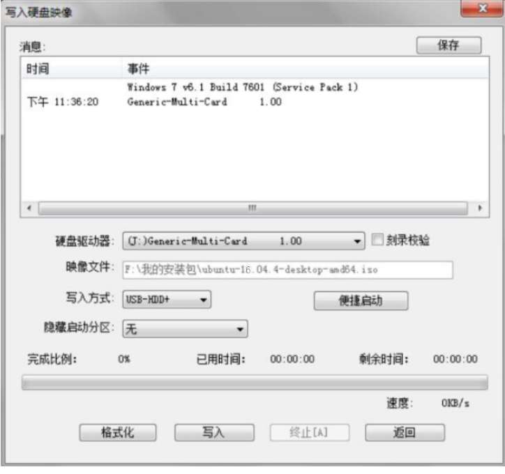 4)在 U 盘格式化完毕之后,选择写入,之后就是慢慢等待了,等待写入完毕;