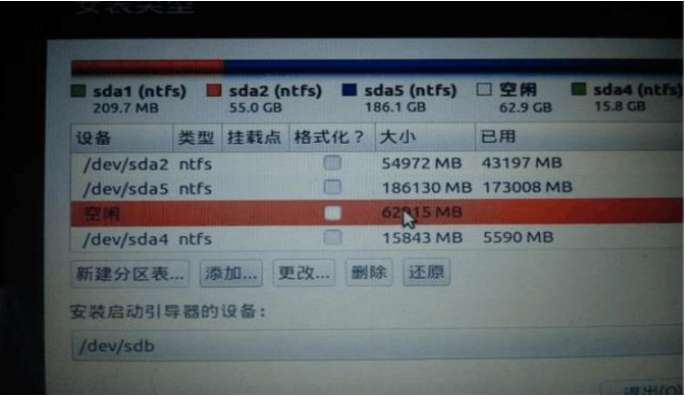 说明:这一步是为ubuntu系统分配空间,单硬盘和双硬盘存在一点区别。