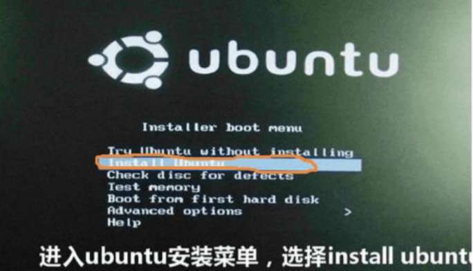 2、然后会进入这个界面,选择Install Ubuntu,回车确认。