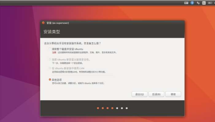 5、出现以下或类似界面,一定要选择"其他选项",因为需要手动分区。
