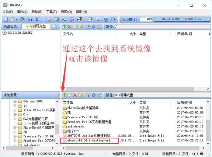1、安装并打开软碟通工具,插上空白u盘。选择文件,浏览并选择ubuntu镜像文件,双击打开。