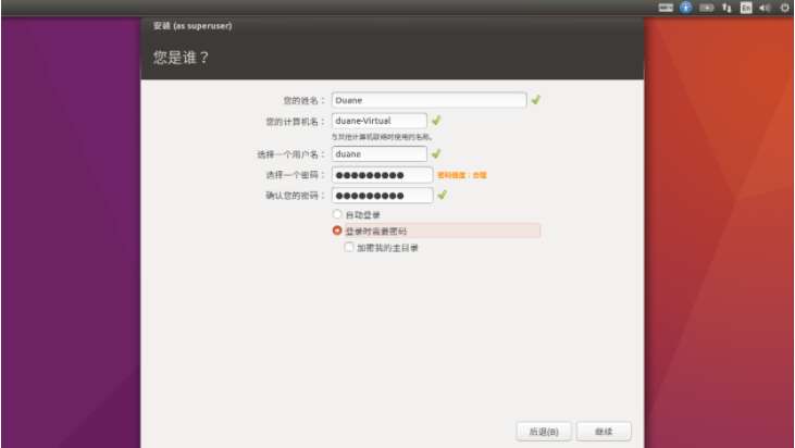 9、这里设置用户,自己输入就可以了,例如英文字母,尽量简单点,密码也简单点。