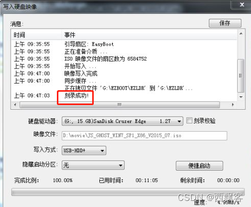 5、点击写入,等一会刻录完成之后,会有成功提示