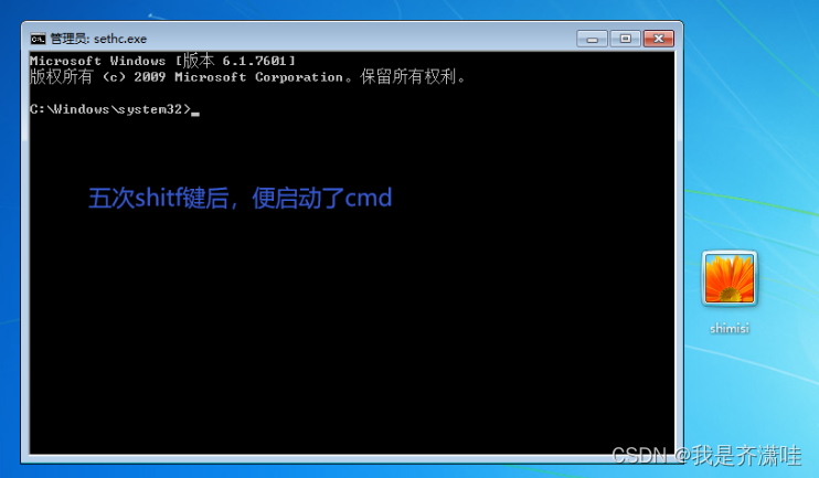 6.再次开机时,连续按五次shift键,打开的则成为cmd