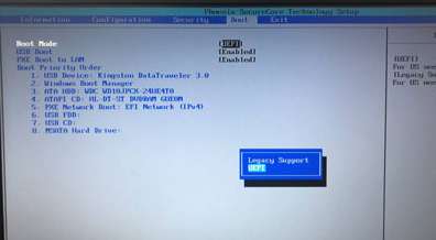 2.接着我们点击“boot”选项,将“boot made”改为“legacy support”。