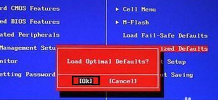 3、在弹出的窗口中选择ok,按回车键确定回复出厂设置。