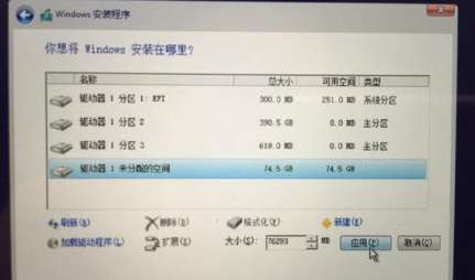 11.建立一个windows主分区,选择这个新建的分区,点击下一步。
