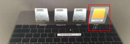 7.重启mac笔记本,长按option按键,选择U盘启动按回车进入。