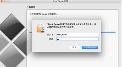 6.此时会开始下载windows系统支持软件,我们输入密码完成操作。