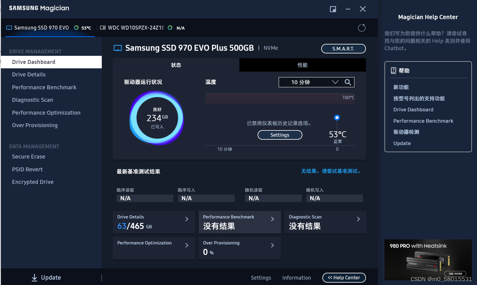 安装三星魔术师软件,下载地址 Magician & SSD Tools & Software Download | Samsung Semiconductor Global