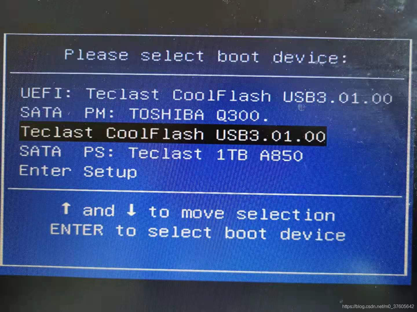 U- disk 启动、 输入 BIOS 并按 ESC 键以选择 U- disk 启动系统 。
