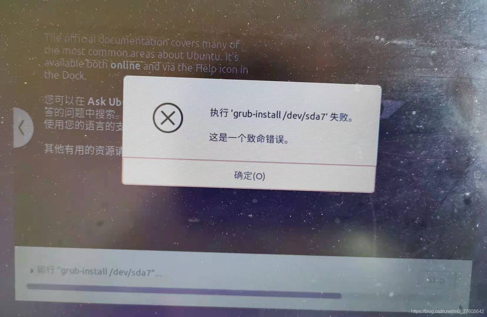 (1) 无法执行“ grub- intal/ dev/ sda7 ” 。 这是一个灾难性错误 。