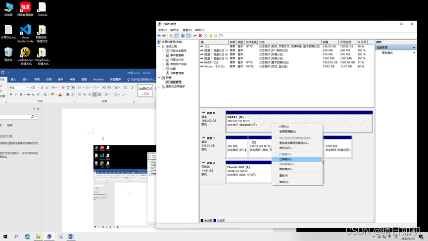 可在Win10系统 压缩卷、磁盘管理 如果在免费磁盘压缩卷上的分割不正确, 音量可以被删除, 然后在原始板块上扩展 。