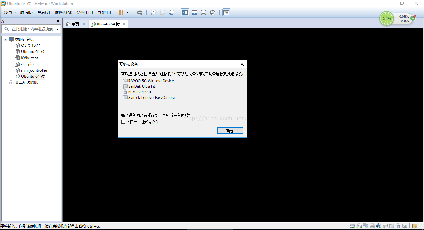 当您单击以选择保存配置并插入预设的闪存驱动器时,虚拟机器即刻启动。可以选择使用移动设备的提示将被弹出。如果不是,请跳到下一步。