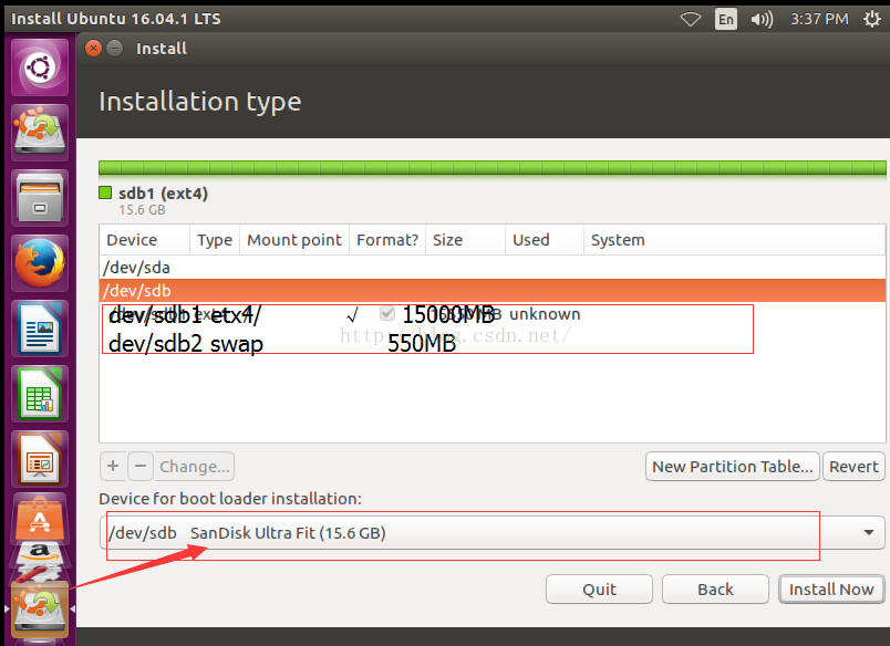 下一步,在启动装载器设备列表的底部,必须选中一个闪存驱动器 。