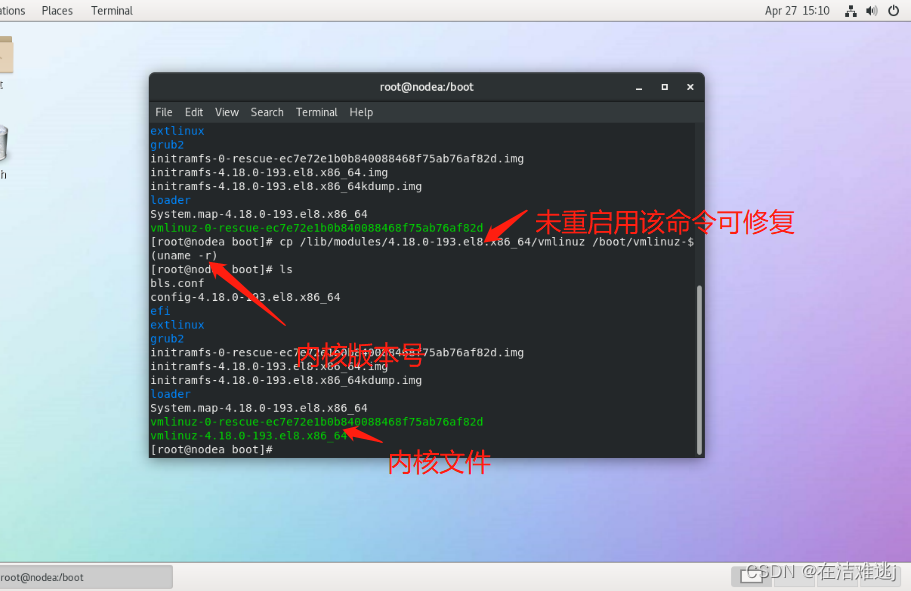 cp /lib/modules/4.18.0-193.el8.x86_64/vmlinuz /boot/vmlinuz-$(uname -r)