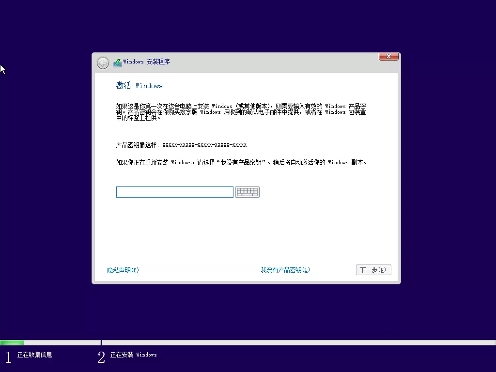 2. 点击可立即安装,输入产品键界面,选择“我没有产品键”,然后继续安装。