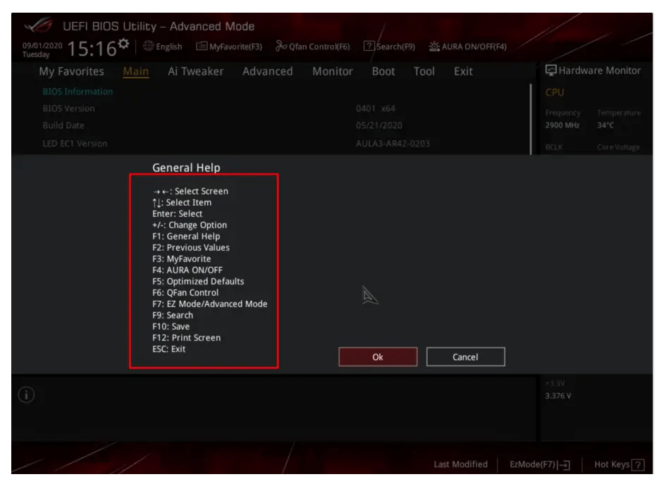 按键盘快捷键F1释放BIOS支持的键盘快捷方式