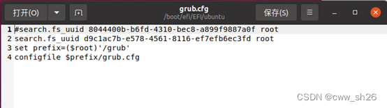 2.修改/boot/efi/EFI/ubuntu/grub.Search in cfg.fs_uuid