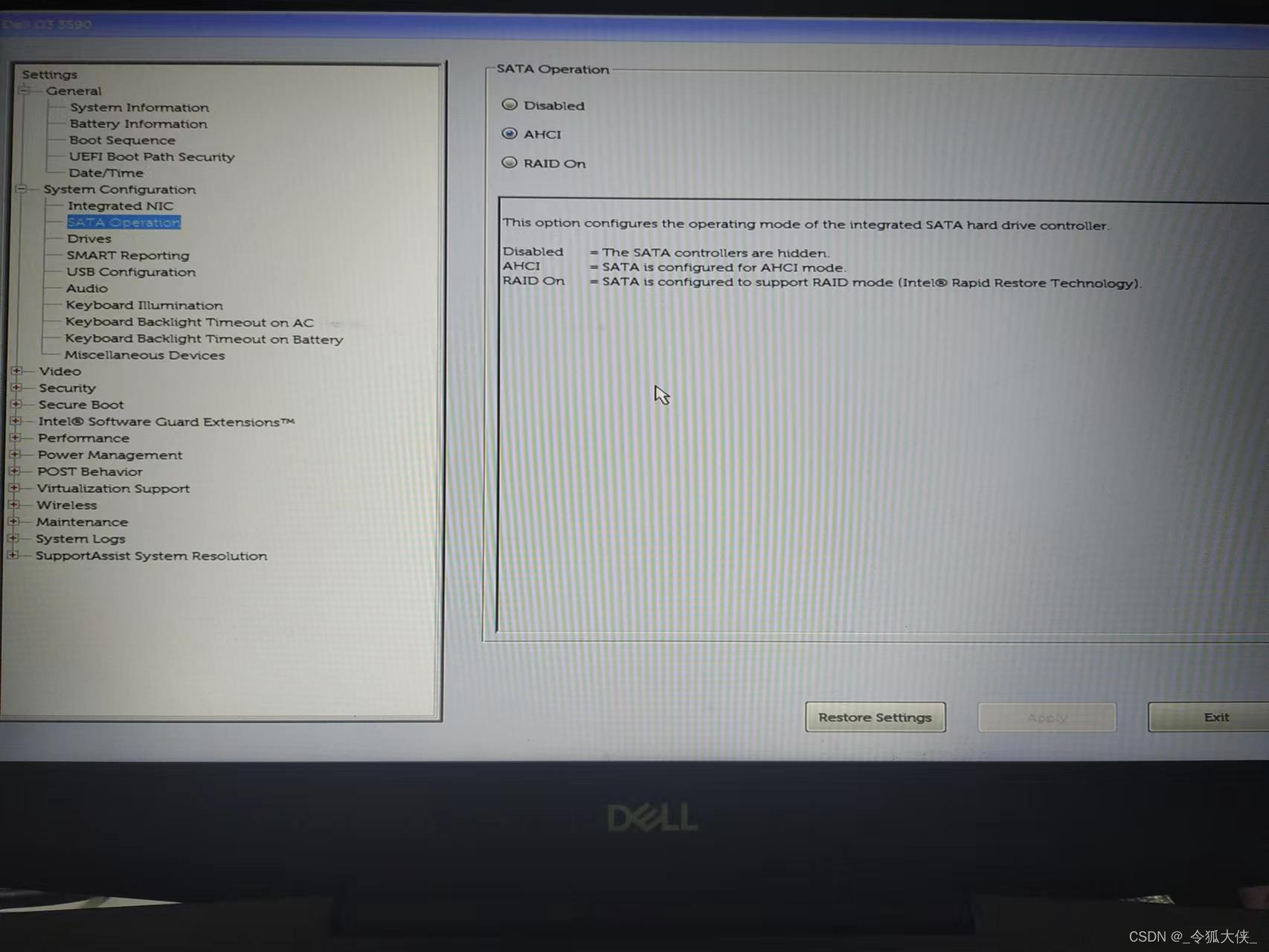 选择System Configuration ,选择SATA Operation,右边选择AHCI