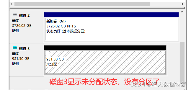 注1:注意,如果你想恢复扩展C磁盘丢失的分区,请在数据恢复之前不要重新建立新的分区。