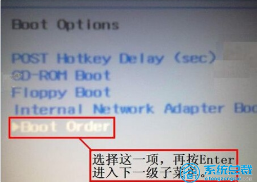 5、进到Boot Option子菜单后,来选择“Boot Order”启动命令,回车键进到子菜单。
