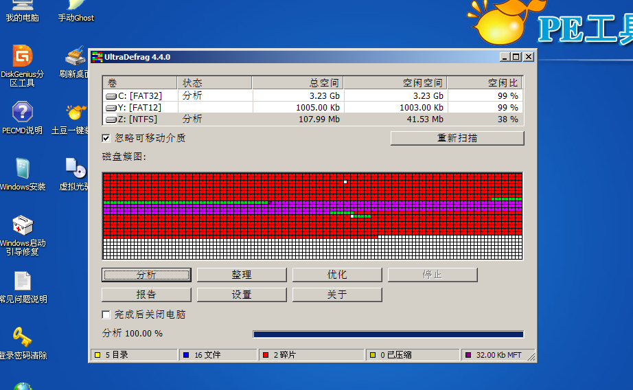 土豆PEu盘UltraDefrag磁盘碎片整理工具详细教程