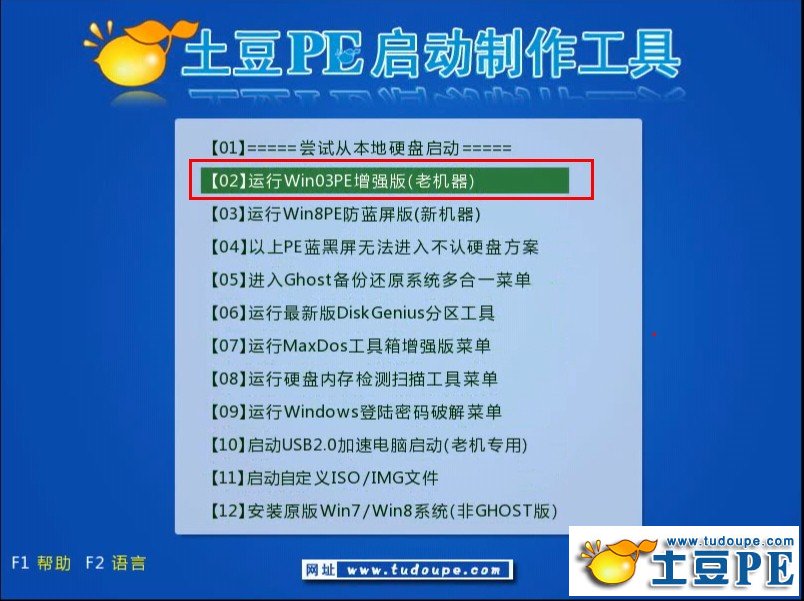 1、将U盘插进电脑,进入U盘PE系统界面,光标选择运行win03PE增强版,回车