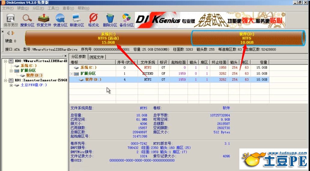 今天土豆PE来教大家在U盘PE系统下,如何使用Disk Genius分区工具,对硬盘进行重新分区。下面我为大家详细介绍一下操作步骤: