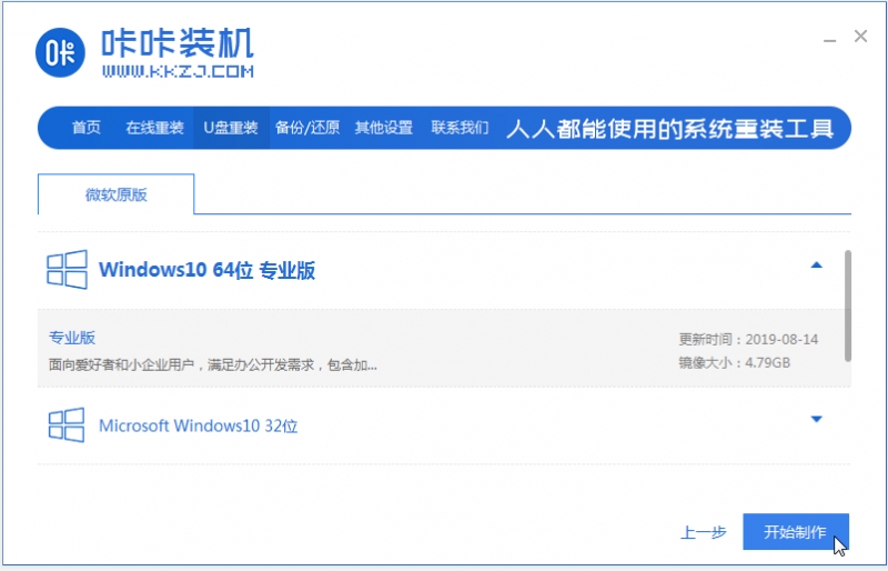 2. 选择要安装的 Win10 系统,并单击开始创建启动磁盘。