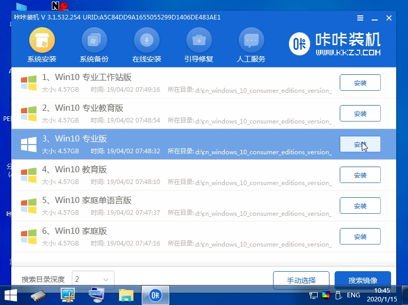 使用机器加载工具打开 PE 系统桌面,然后选择 Win10 系统安装 。