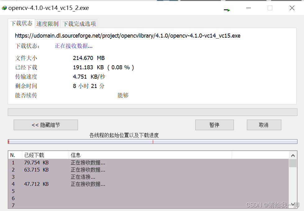 但是我失败了。经过我的研究,解压路径要直接选盘符,例如C:/,这样就能成功。奇怪的是参考链接的博主都不是直接放盘符的,emmm。我猜难道是我昨天晚上把EMGU配置了的原因?