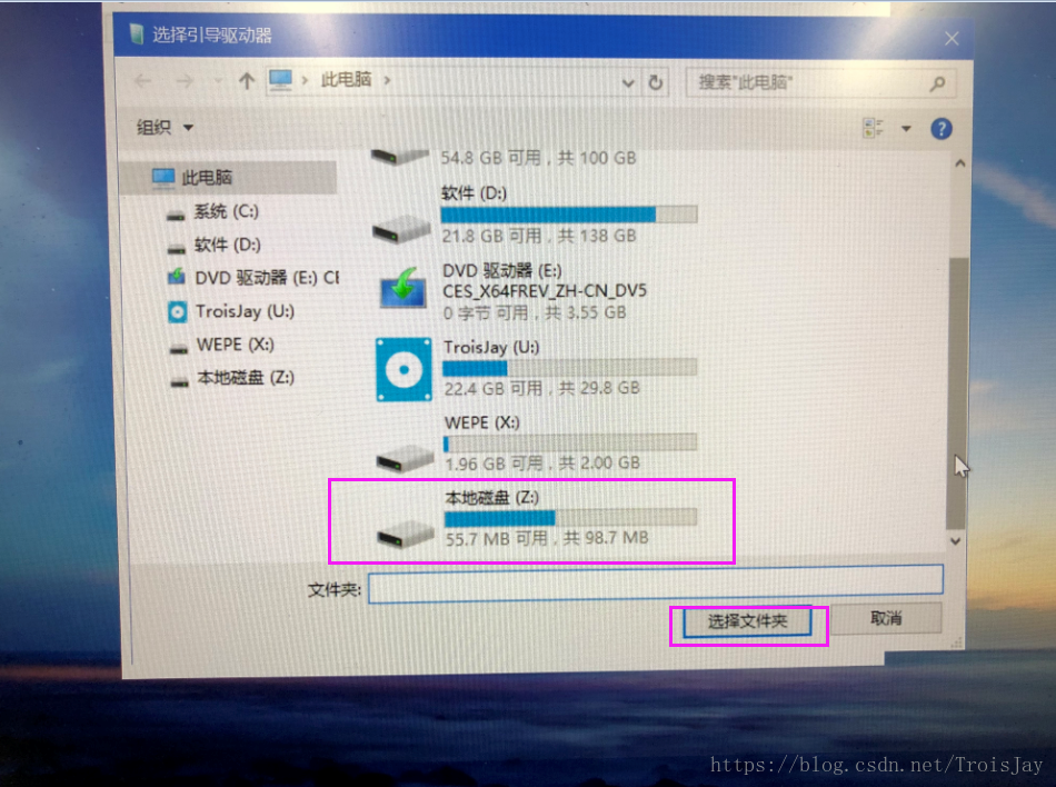 - 点击选择,然后找到你U盘里的iso镜像,打开