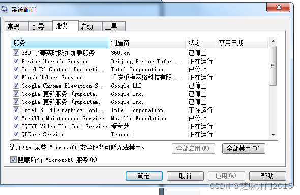 点击服务 隐藏微软自己的服务 看看后来安装的程序 哪些是可疑的。